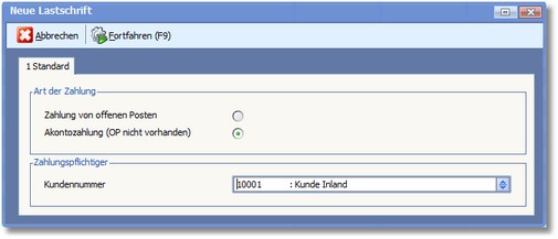 So können Sie eine manuelle Lastschrift von Akontozahlungen erstellen: