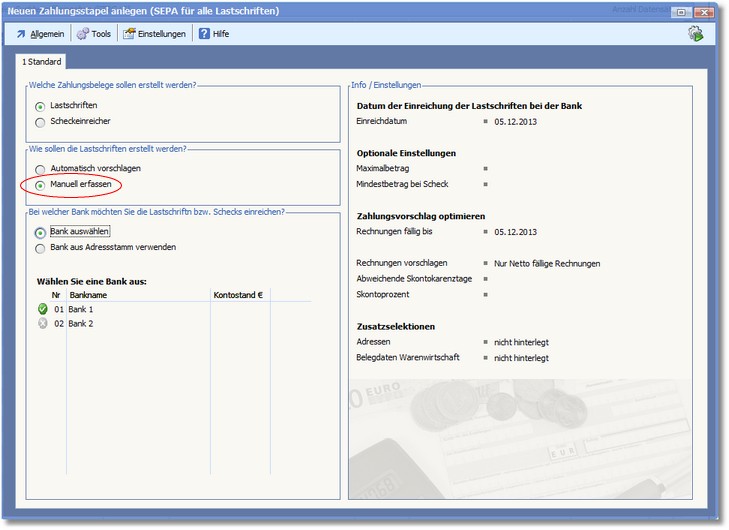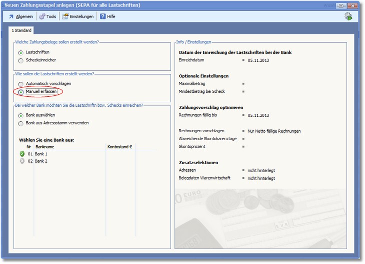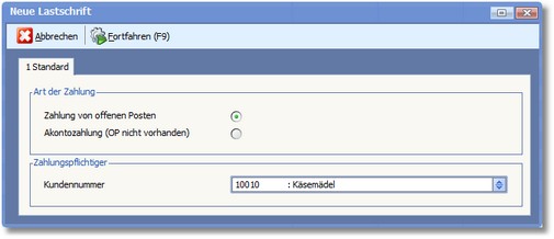 So können Sie eine manuelle Lastschrifteinzug von offenen Posten erstellen: