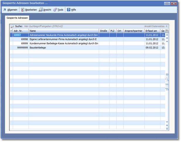 1. Klicken Sie mit der Maus im Adressstamm auf "Tools > Gesperrte Adressen bearbeiten".