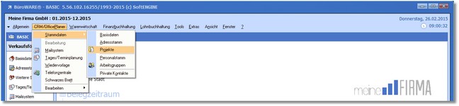 1. Klicken Sie mit der Maus im Hauptmenü auf "CRM/OfficePlaner > Stammdaten > Projekte".