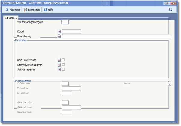 Der Dialog "Erfassen/Ändern - CRM-WVL-Kategorienstamm"