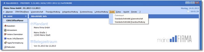 1. Klicken Sie mit der Maus im Hauptmenü auf "Tools > Datenimport / Standardschnittstelle Warenwirtschaft".