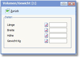 Geben Sie hier die Maße des Versandmittels ein.