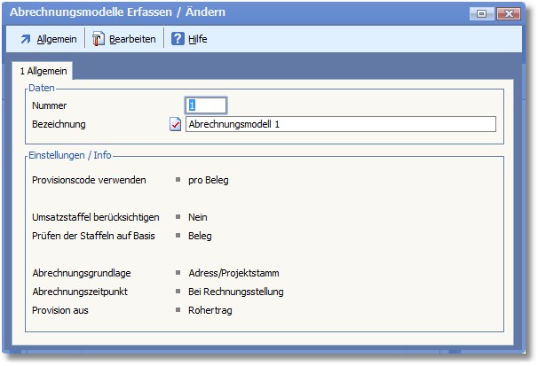 << Hier KLicken um eine Inhaltsübersicht anzuzeigen >> Navigation: Warenwirtschaft > Stammdaten > Vertreter > Vertreterstamm - Menü > Abrechnungsmodelle |