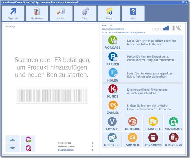 Navigation:  Kassensystem > Bedienung der Kasse (Anwenderinformationen) > Kassieren > Kassieren - Barverkaufsdialog > Tägliche Kassenvorgänge >
