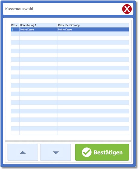 2. Wählen Sie aus der Liste die gewünschte Kasse und bestätigen Sie mit [RETURN] oder einem Klick auf den Button <Bestätigen>.
