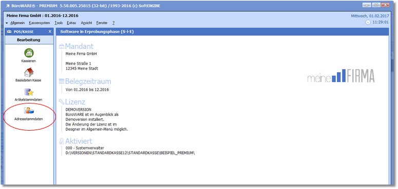 Im Arbeitsplatz des Kassensystems finden Sie die Verknüpfung "Adressstammdaten", mit welcher Sie die Adressauswahltabelle der Warenwirtschaft aufrufen können.