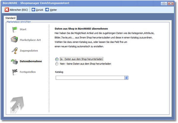 Es folgt nun eine Abfrage, ob bei der Einrichtung des Marketplaces Artikeldaten aus dem Shop heruntergeladen werden sollen: