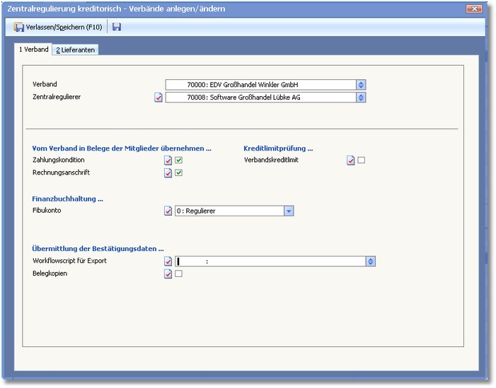 Zentralregulierung kreditorisch - Verbände anlegen/ändern