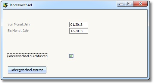 Mit diesem Programm werden keine Saldovorträge verbucht! Es wird lediglich ein neuer Buchungszeitraum angelegt. |