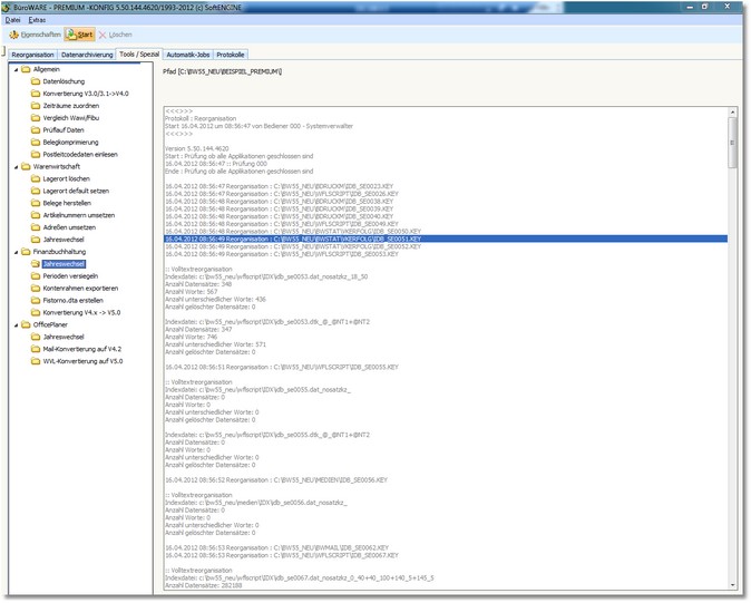 Wir empfehlen vor dem Starten der Reorganisation das Programm-Modul BW000332.exe neu zu starten um Fehlermeldungen zu vermeiden! |