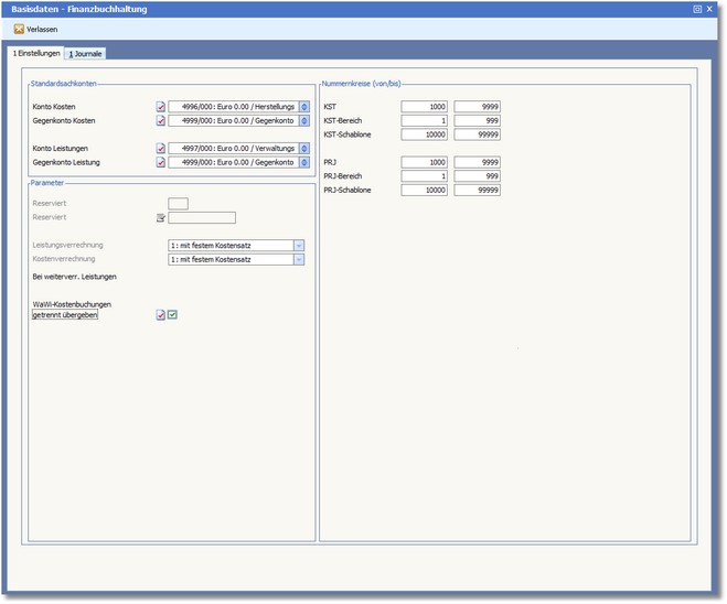 Das Programm öffnet die für die Kostenrechnung relevanten Basisdaten der Finanzbuchhaltung.