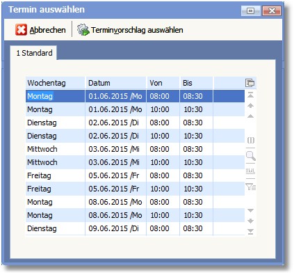 << Hier KLicken um eine Inhaltsübersicht anzuzeigen >> Navigation: OfficePlaner > Terminverwaltung > Terminplanung > Arbeiten mit Terminen > Termin vorschlagen > Termin auswählen |