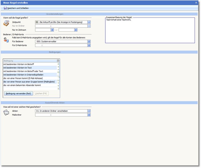 Navigation:  OfficePlaner > Mailsystem > Mail einrichten > E-Mail-Assistent - Extras > Regelassistent >