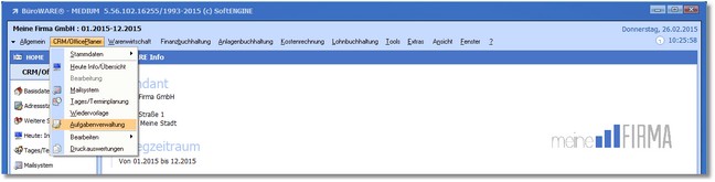 1. Klicken Sie mit der Maus im Hauptmenü auf "CRM/OfficePlaner > Aufgabenverwaltung".