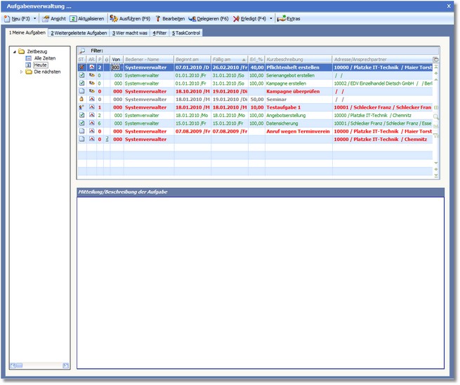 In der Tabelle sind alle Aufgaben, je nach Selektion im Verzeichnisbaum, aufgelistet.