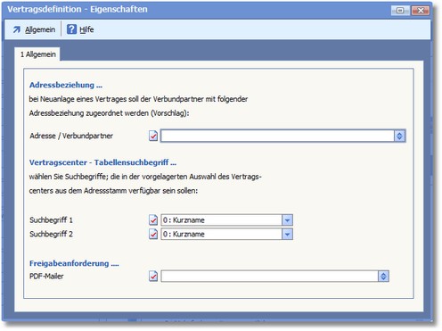 Einstellungen, die für alle Vertragsarten gelten, werden über diesen Eigenschaftendialog hinterlegt.