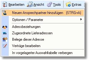 2. Klicken Sie mit der Maus auf den Menüpunkt "Bearbeiten > Neuen Ansprechpartner hinzufügen".