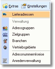 1. Klicken Sie mit der Maus im Adressstamm auf "Extras > Lieferadressen".