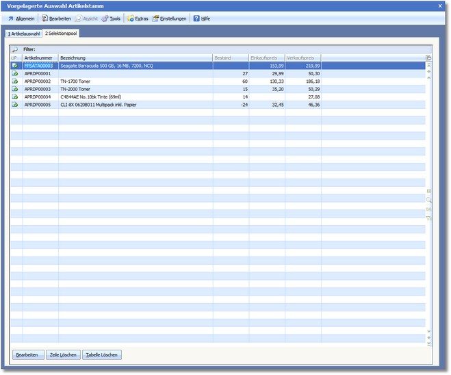 Selektionspools sind in der Warenwirtschaft für die Bereiche Adressen, Vertreter, Artikel, Adress/Artikel und Belege verfügbar.