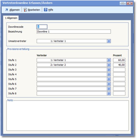 Dieser Dialog nimmt allgemeine Daten der Downline auf.