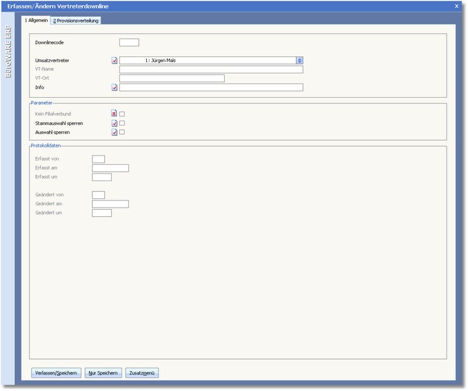 2. Erfassen Sie die Daten in den vorgesehenen Feldern und speichern Sie die neue Vertreterdownline mit der Funktionstaste [F10].