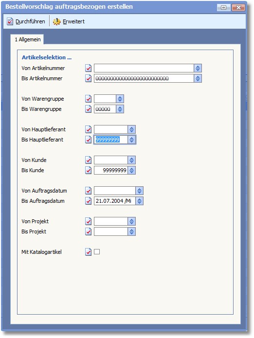 << Hier KLicken um eine Inhaltsübersicht anzuzeigen >> Navigation: Warenwirtschaft > Lagerverwaltung > Bestellsystem > Bestellvorschlag auftragsbezogen erstellen |