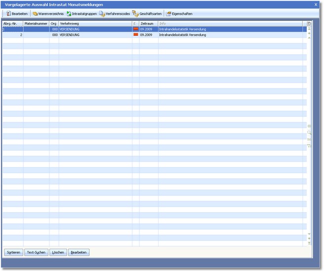 Das Programm öffnet die vorgelagerte Auswahltabelle "Intrastat Monatsmeldungen".