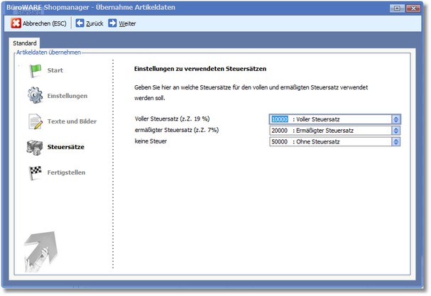 Der Einrichtungsassistent für die Artikelübernahme wird nun gestartet.