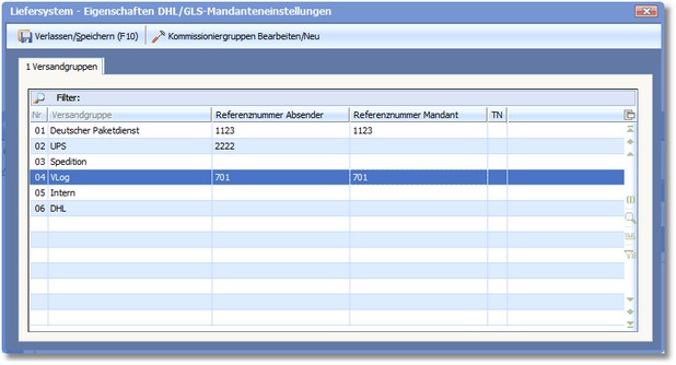 Für den Logistiker DHL wird eine Kommissioniergruppe benötigt, da hieraus die Angaben für den Mandanten und den Absender ermittelt werden.