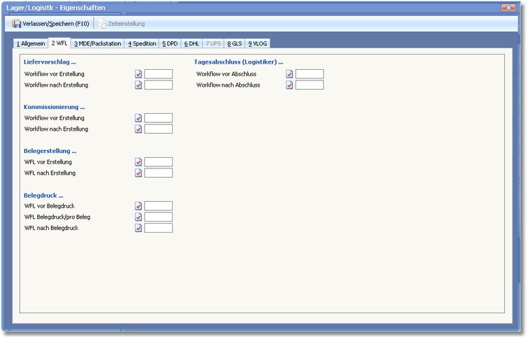 << Hier KLicken um eine Inhaltsübersicht anzuzeigen >> Navigation: Warenwirtschaft > Lagerverwaltung > Lager/Logistikcenter > Liefersystem - Eigenschaften > Die Karteikarte "WFL" |