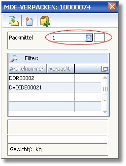 2. Im nachfolgenden Dialog müssen Sie zunächst im Feld PACKMITTEL das entsprechende Packmittel auswählen.