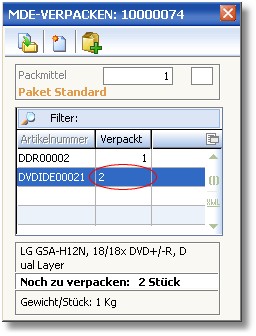<< Hier KLicken um eine Inhaltsübersicht anzuzeigen >> Navigation: Warenwirtschaft > Lagerverwaltung > Lager/Logistikcenter > Mobile Datenerfassung (MDE) > Verpacken |