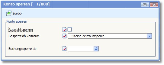 Über den Menüeintrag "Bearbeiten > Optionen/Parameter > Kontensperren" können Auswahl- und Buchungssperren für das Sachkonto hinterlegt werden.