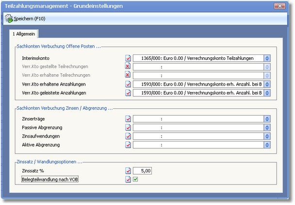 Das Programm öffnet die Grundeinstellungen des Teilzahlungsmanagements.