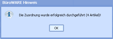 Nach Abschluss der Funktion werden Sie über die Anzahl erfolgreicher Zuordnungen informiert.
