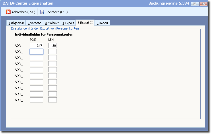 Es besteht die Möglichkeit, zusätzlich zu den Standardfeldern 10 weitere Felder der Personenkonten individuell zu übergeben.