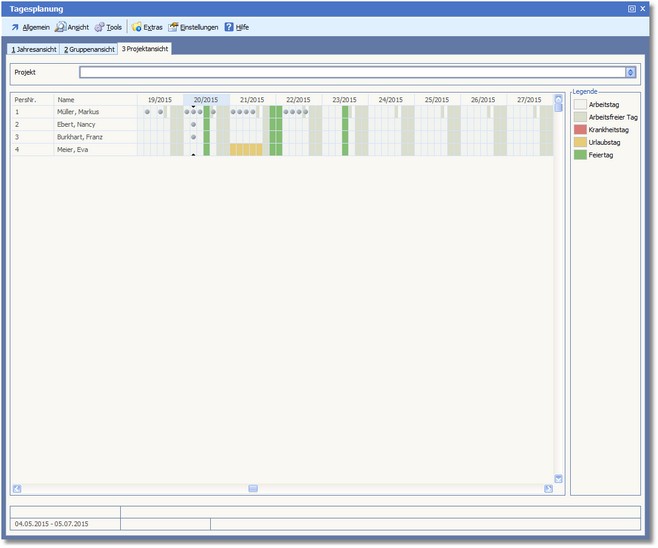 << Hier KLicken um eine Inhaltsübersicht anzuzeigen >> Navigation: CRM/OfficePlaner > Terminverwaltung > Tagesplanung > Karteikarte "Projektansicht" |