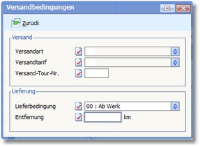 In diesem Dialog können diverse Einstellungen zu den Versandbedingungn vorgenommen werden.