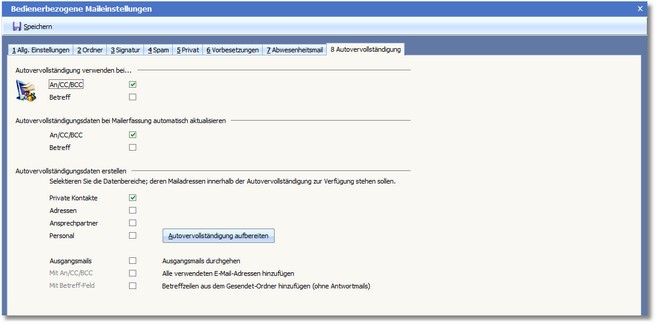 Navigation:  CRM/OfficePlaner > Mailsystem > Mail einrichten > E-Mail-Assistent - Extras > Bedienerbezogene Einstellungen >
