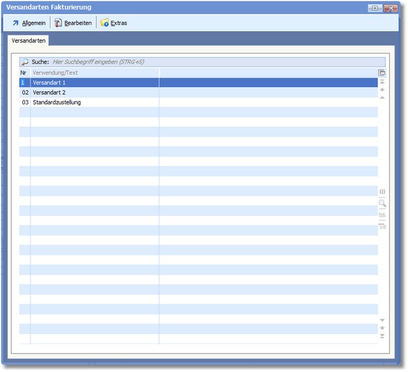 In einer vorgelagerten Auswahltabelle werden alle vorhandenen Versandartmodelle angezeigt.