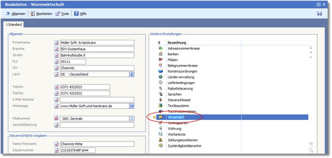 Die Basisdaten der Warenwirtschaft werden geöffnet.