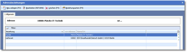 Mit [F3] öffnen Sie den Dialog "Adressbeziehungen erfassen/ändern".