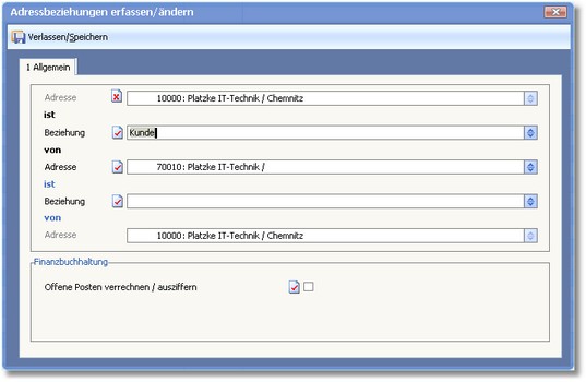Aktivieren Sie den Status dieses Feldes, wenn bei dieser angelegten Adressbeziehung die gegenseitige Auszifferung in der Finanzbuchhaltung möglich sein soll.