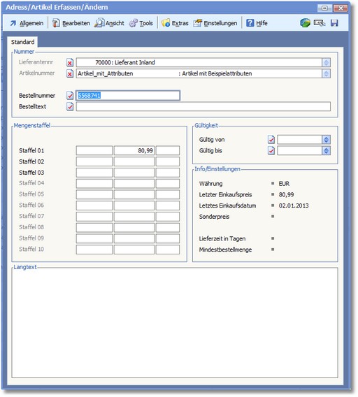 Hier verwalten Sie die Adress/Artikelkonditionen für Lieferanten.