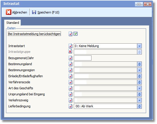 Tragen Sie hier ggf. die gewünschten Intrastatparameter ein..